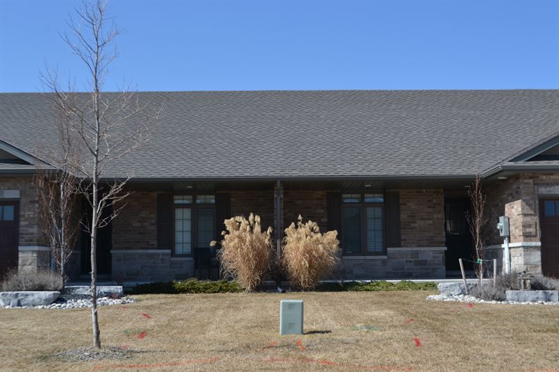 The entire address is: 300-320; 324-328; 332-334; 340-344; 348-360; 364-376; 380-384; 388-392; 345-357; 361-373; 377-381 Brittali Avenue. This is a new area of residential development just north of the 402 and just west of highway 40 (Modeland Avenue) off of Berger Drive. The builder built the most amazing brick and stone fence on the south east corner of Berger Drive and Paola Street separating a cluster of six units from the road noise of Berger Drive. It makes a wonderful statement but the cost of doing so would have been enormous.